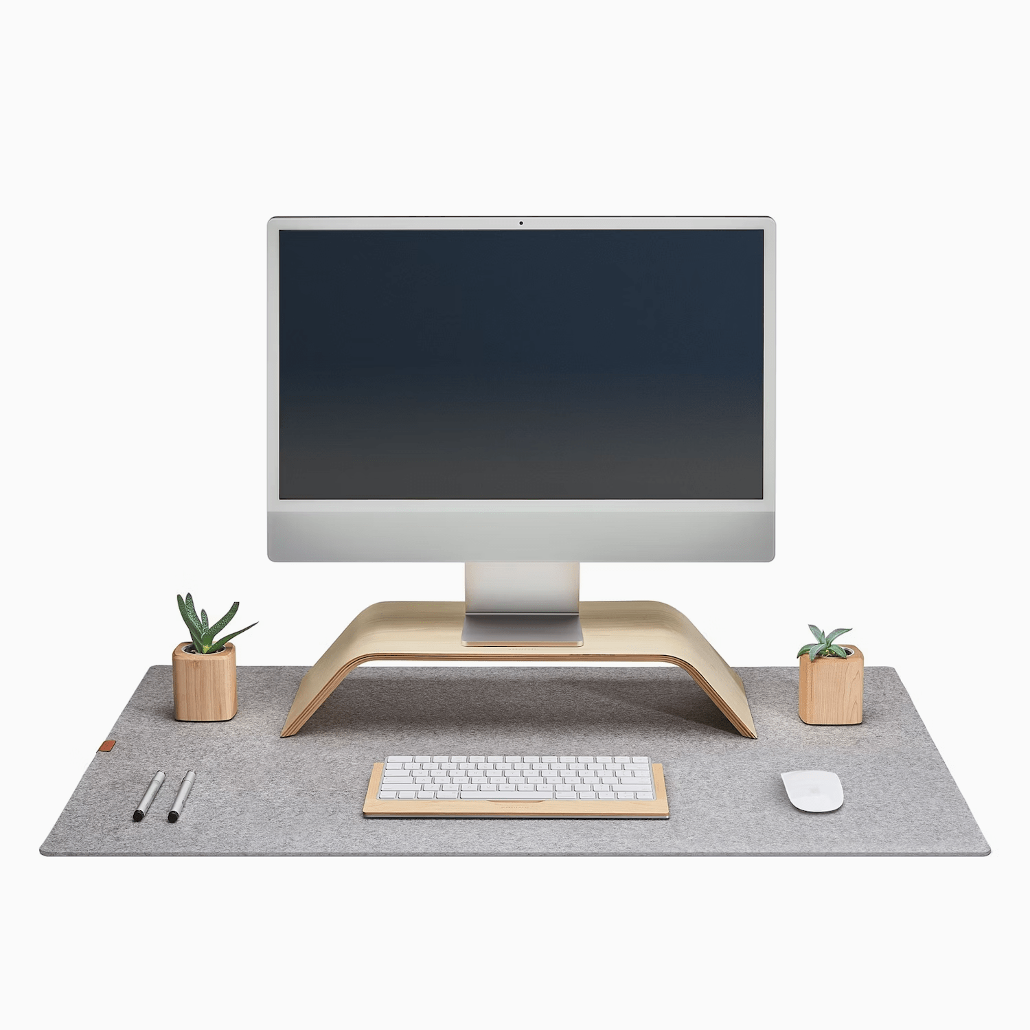 جنس نمد، علاوه بر نرمی، یه حس طبیعی و شیک به میز کارت میده، مخصوصاً برای اونایی که دنبال یه فضای ساده و منظم هستن.