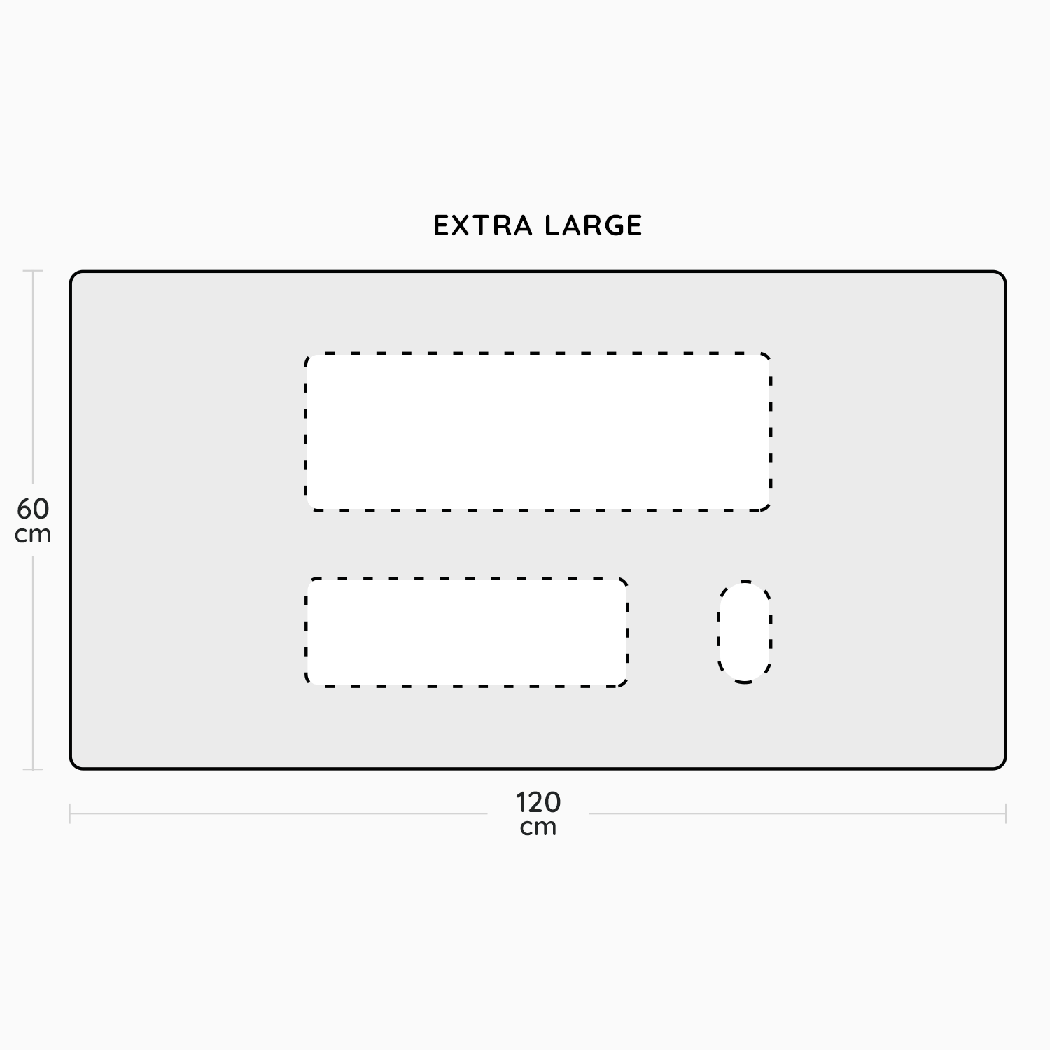 ابعاد ۶۰×۱۲۰ سانتیمتری این مدل باعث میشه کل سطح میز کار یا عکاسی رو بپوشونه. اگه میز بزرگی داری یا معمولاً از دو مانیتور استفاده میکنی، این سایز دقیقاً انتخاب درسته. فضای کافی برای ماوس، کیبورد، لپتاپ، دفتر، ماگ قهوه و حتی دکوریهای کوچیکت داری، بدون اینکه حس شلوغی یا بینظمی ایجاد بشه.