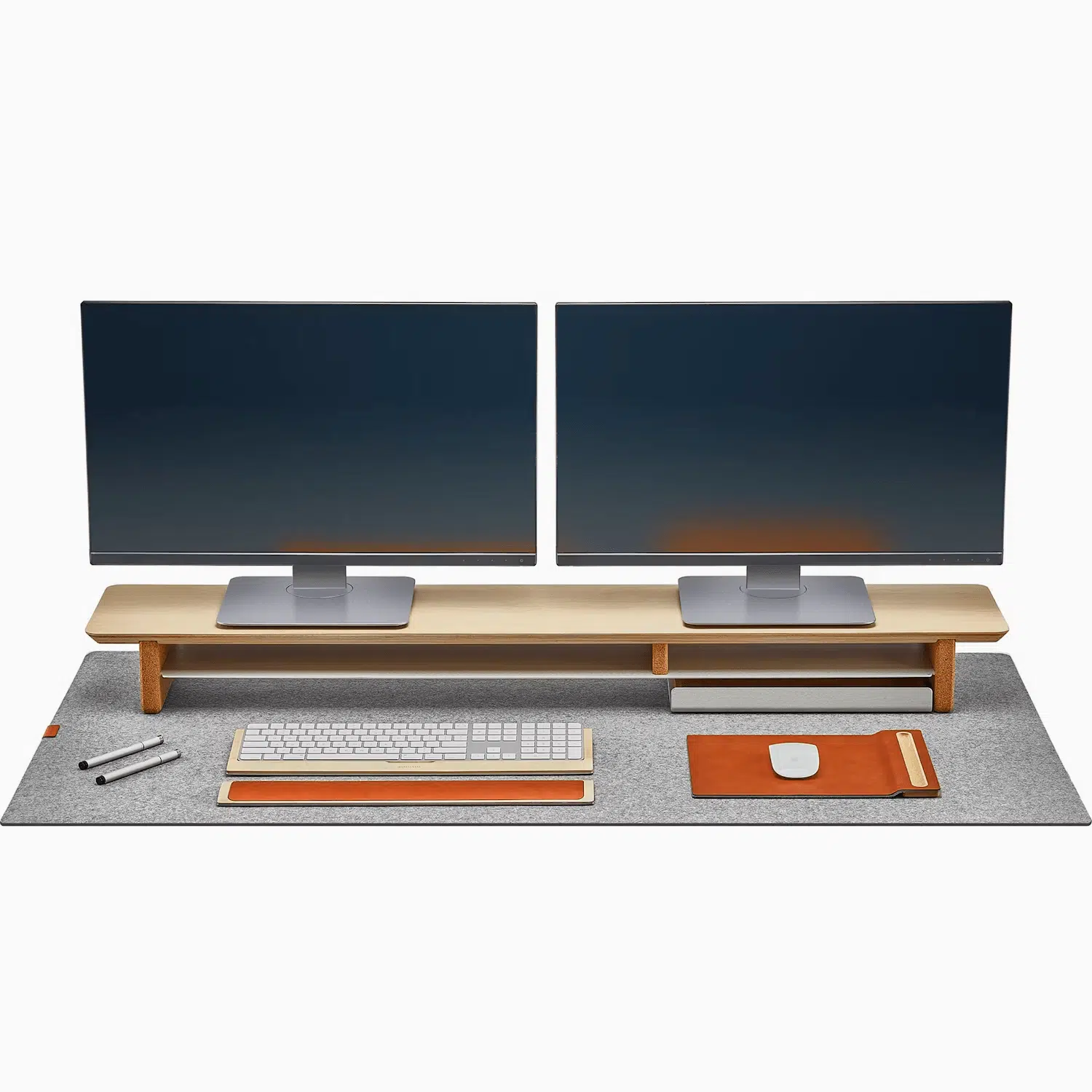 جنس نمد، علاوه بر نرمی، یه حس طبیعی و شیک به میز کارت میده، مخصوصاً برای اونایی که دنبال یه فضای ساده و منظم هستن.